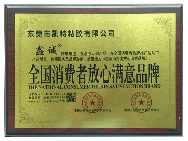 全国消费者放心满意品牌证书