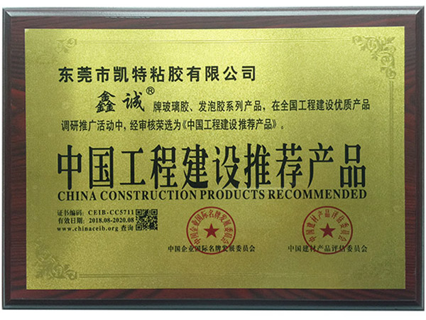 中国工程建筑推荐产品证书